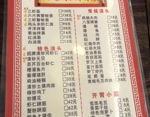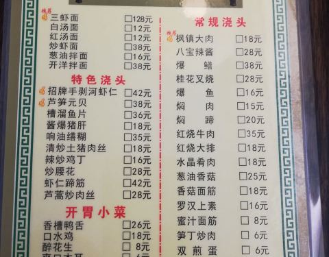 苏州的面馆还是很多的.本来也是很喜欢吃面的.喜欢红汤面.感觉口味会浓郁些.每个浇头都是单点的呢.入座后主动来倒茶水.这个是一般面店很少有的服务.这点比较满意.鲍鱼土猪肉是吃得挺不错.萝卜干味道不错.就是需要单点的.
