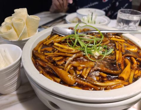 - 这一家用传统食材做出来的菜品还是很有特色的!江浙一带的美食本来就是丰富多彩!环境也不错