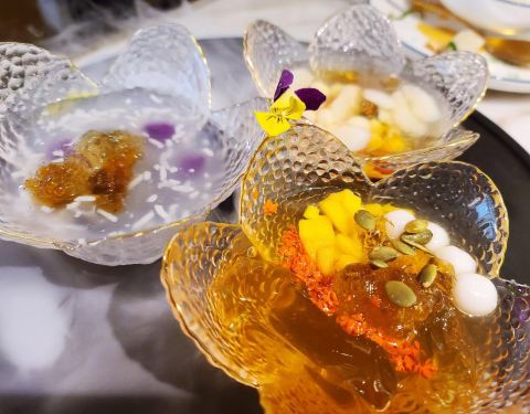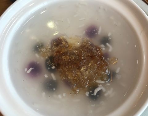 - 特别推荐桃花坞酒酿桃胶,三色的小丸子加上酒酿加上桃胶,清甜爽口