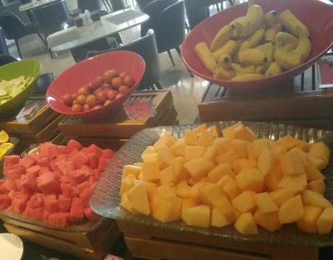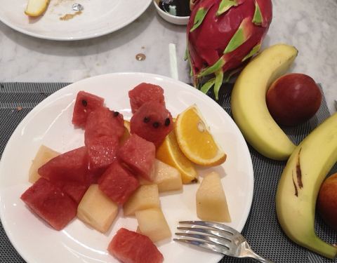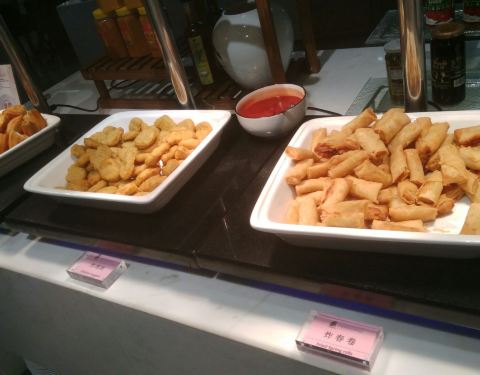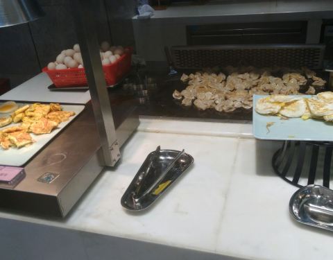 自助早餐感觉还蛮丰富,有水果,有寿司,有中式面点,吐司还配了烘烤机,煎饺,煎蛋,还有各种汤粉!味道还不错,可惜胃小,只能尝试一两种菜品!!