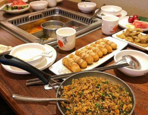 【锅底】点了菌菇,牛油,番茄三合一的锅底。牛油锅底都是服务员现场拆包放进牛油块的,看的见的放心安全。 【巴邑炒饭】这个一定要放在开头写,谁能想到一家火锅店把炒饭做的如此好吃,里面有鸡蛋,胡萝卜,火腿肠,青菜,还有年糕颗粒,我的妈呀,而且酱油调味刚刚好,米饭粒粒分明,看起来油润润的,但是吃起来一点都不油 一定要点。 【巴邑秘制牛肉】超级厚的牛肉,主要是超级嫩,没有什么筋膜会搁牙,一口一大片太爽了。 【虾滑】又是一名优秀的选手,肉眼可见的大颗虾肉 混合着虾泥,超级Q弹,是火锅店里虾滑的佼佼者。 【丸类拼盘】一共12颗,4种丸子各3颗,分别是蟹籽包,芝士包,黄金芝士烧,牛肉丸。 【午餐肉】不是淀粉的午餐肉哦,是实实在在肉在里面的午餐肉,实在。 【红糖糍粑】去哪里都必点的红糖糍粑,巴邑做的也很优秀,黄豆粉和红糖调配的刚刚好,而且一个个都是很扎实的圆鼓鼓的麻糍。 【小酥肉】虽然我觉得小酥肉就是比不上泡精肉,但是巴邑的小酥肉还不错,都是瘦肉,不会像以前我在别的火锅店吃到有带肥肉的那种。 服务非常到位,上菜很快,而且服务员会很及时的给你撤空盘,不会热情的特别过分,但是会让你感觉很舒服,好评好评。