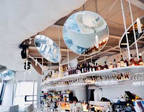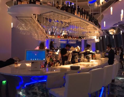 梦幻的高空酒廊餐厅,城市风景一览无余。