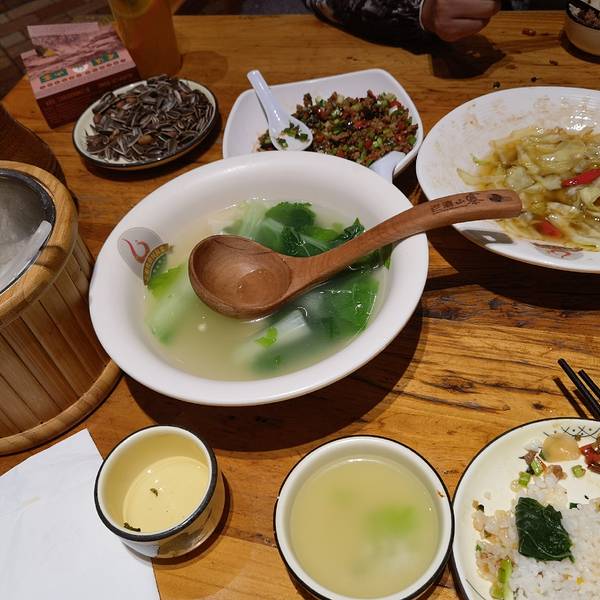 因为是下午3点多去吃的,菠萝饭等主食不能做,点菜都没问题。 思茅酸汤鱼片:除了鱼片,还有菜花、土豆片和肚片,酸辣可口。 丽江紫洋芋:炸的很香,不过有的脆,有的发艮。 番茄小米菜:有种清香味,蒜片都好吃。 服务凑合吧,赶上下午休息时间,服务员不是很热情,汤勺需要主动要。