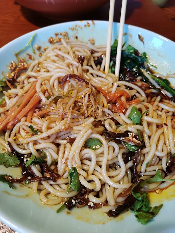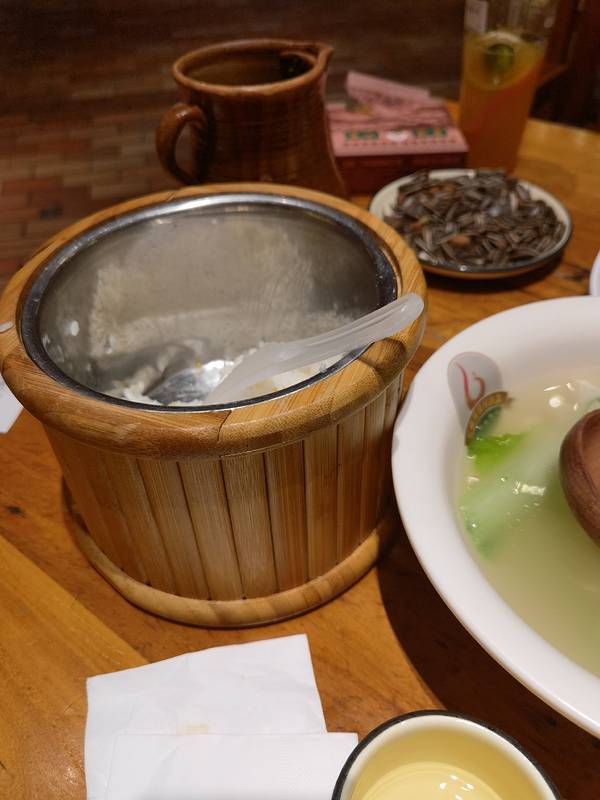老滇山寨的口味太吃不惯了。炸洋芋虽然很油还能吃。百香果排骨太腻了只吃了几口。烤豆腐是人间灾难,味道口感都差劲。酸牛扒太肥,配菜难以下咽。但是这家的茶壶很别致,抱着一点不烫手,救了冻死的我。