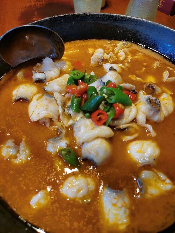 因为是下午3点多去吃的,菠萝饭等主食不能做,点菜都没问题。 思茅酸汤鱼片:除了鱼片,还有菜花、土豆片和肚片,酸辣可口。 丽江紫洋芋:炸的很香,不过有的脆,有的发艮。 番茄小米菜:有种清香味,蒜片都好吃...
