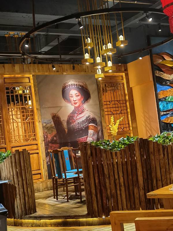很有民族特色的一家店,没错了。店内张灯结彩,喜气洋洋,古朴、民族气息浓郁的设计,颇有特点;菜品一如既往的深得我心,丽江紫洋芋、思茅酸汤鱼片、石屏烤豆腐……吃再多次,也不厌倦;待酒过三巡,帅气的小伙、美腻呢小姐姐开始献上祝酒歌,歌吼得不错的你,大可以端起大碗酒,撸起袖子,使上洪荒之力和阿黑哥、阿表妹一起来个地道的地方民歌大对唱。