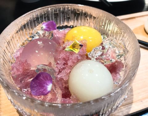 注意到这家是某大佬强烈推荐了分子甜品,水果球,确实,令人眼前一亮,三种口味的小球,荔枝、椰子、...