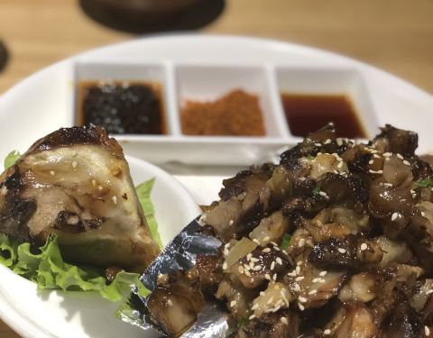 几个内蒙小伙一起开的店,能吃到很多只有当地人才懂的烧烤吃法,可以说是藏在望京的小内蒙了。羊尾油裹着羊肝,如果是第一次吃的人可能会有点犹豫,其实吃着特别香,真的不会腻。【蒙古肉肠】肠里裹着羊肚,也是拒绝系的烤串,酒鬼最爱。【蒙古包子】除了蒸的,也可以吃烤的,两个一串、按串卖。