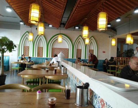 一家开张时间不长的清真饭馆,营业面积适中,比较干净,有外卖窗口。牛肉面做得很地道,另外各种面食小吃很多,其中炸糕,鸡蛋韭菜馅饼和麻酱甜火烧做得不错,每次都买。