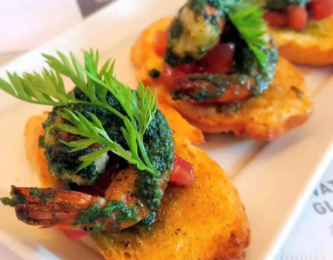 这家西餐厅在我心中的地位一直不可动摇,最近发现在公司不远的万科开了一家分店,甚是欢喜。 |罗勒鲜虾面包塔^餐前来到开胃菜,罗勒酱包裹在去壳的虾肉之上很鲜,面包烤的脆脆的,还有淡淡的咸味。 |土耳其烤鸡&...