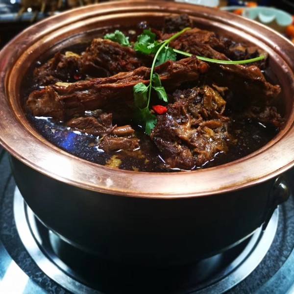 羊蝎子、铜火锅,再涮上几盘新鲜羊肉,羊蝎子肉质软烂,随便捞起来都是带骨带肉带髓的精华部位