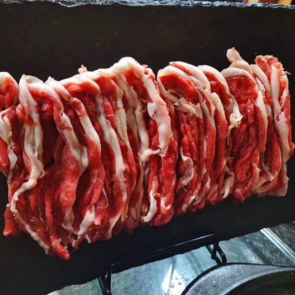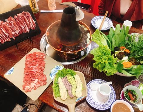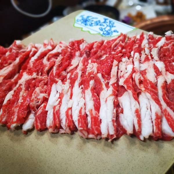 天冷就要吃火锅呀! 原汁原味的铜锅和手切鲜肉,想想就流口水~ 有点甜的农夫山泉,加上葱红枣桂圆枸杞等锅底小料,铜锅就是要吃肉的本来滋味。 手切的肥牛和羊肉份量都很足,而且肉的品质很好,可以站立不倒,吃在嘴里特别香,哈哈哈。 一大碗青菜,碗真的很大,食材种类也多,火锅基本款蔬菜都包含,两个人都吃不完。 当然,铜锅的麻酱小料是超赞的,最后在煮点面条拌好,味道杠杠的。