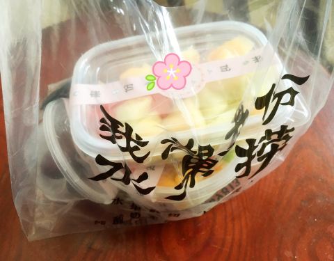 想不到今天突然间气温变热,马路上是不是就我一个人穿着还戴着毛的衣服,还穿着毛裤,热到不行就跑来买了两份水果捞。 正好外婆出院了,买了两份就外带到医院。作为我的晚餐,我选择的是碳烧的水果捞,搭配的红提。给外婆买的那一份是正常的水果捞,加了一份果切和红提。量特别大,水果种类也挺多的。