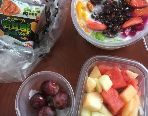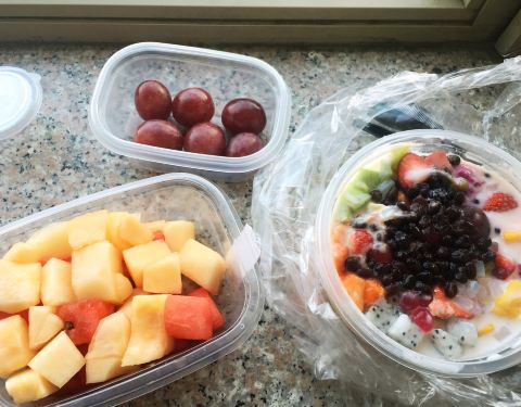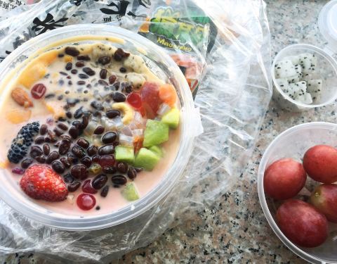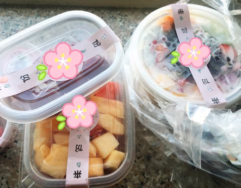最近外婆住院,我每天晚上过来看看外婆,都会在这家店买两份水果捞,一共已经买了14份了。天气渐渐炎热,每份水果捞都是750毫升的,再外加一些果切和红提。水果捞的容量非常大,吃一份都不用再吃晚饭。水果的种类有很多。我都会选择炭烧口味的,给外婆用原味的,怕她不习惯吃炭烧口味的。