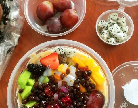 作为我的晚餐,我选择的是碳烧的水果捞,搭配的红提。量特别大,水果种类也挺多的