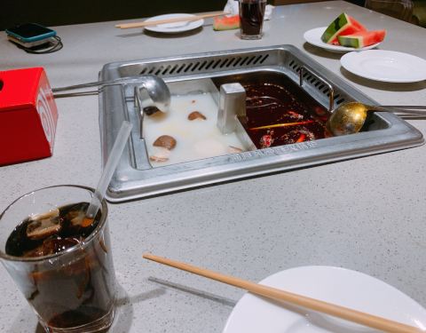 捞派滑牛肉,很嫩,番茄锅底和牛肉粒搭配,棒