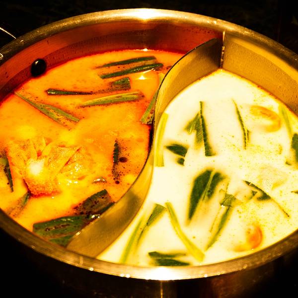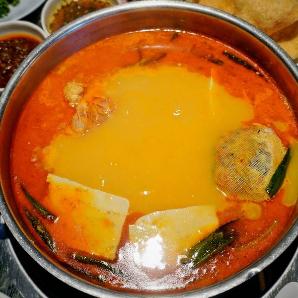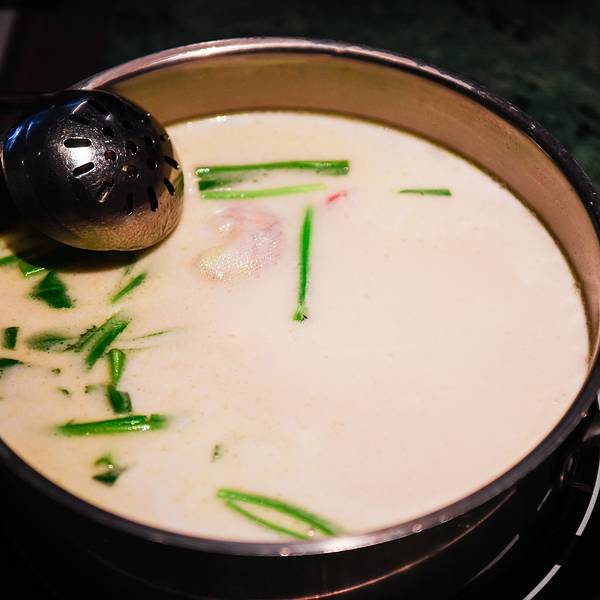 环境优雅,与大部分的火锅店不一样的是,进入到餐厅并没有浓郁呛鼻的烟熏味道,可能和装潢设计有关,找到一处靠窗的座位,来看一看都有哪些美食。【锅底】招牌鲜料冬阴功锅(辣的)、泰式双味锅(鸳鸯)、泰式椰...