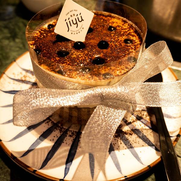 早已成为网红火锅店的集渔泰式海鲜火锅,随意路过都是大排长龙,即使是排队,也不会让你的嘴巴闲着,这里提供免费的柠檬水和茶水,另外还有怪味蚕豆、爆米花、红薯条,让你的排队时光也是那么地轻松惬意。餐厅整体的环境十分和谐,有一个巨大明亮的吊灯从三楼一直延申到一楼,周围有各种绿植衬托着,我相信没有一个女孩子能抵挡的了拍照的诱惑吧,在这样绿色清新的环境中就餐也会让人心情愉悦。 在食材上来之前,会有各式各样的小吃甜点,可以自己根据喜好来挑选,而且都是免费无限量供应的。 你看这个焦糖布丁就很和我的胃口,还有这个乳酪蛋糕,再咬一片脆脆的虾片,还有芒果糯米饭,简直是停不下来。主菜也很快就上来了,两大拼盘的食材连桌子都放不下了,一盘上面是丰富的蔬菜以及打好的虾滑和鱼滑,另一盘就全都是海鲜食品了,赤贝、北极贝下面垫着柠檬片光彩动人,生蚝、龙利鱼同样不甘示弱,横行霸道的螃蟹已经被老老实实的按在碗里,超大的鲍鱼依次排好队等待你的检阅。锅底我们要了鸳鸯锅,蘸料要了泰式酸辣的,在吃之前小姐姐给我们舀了一碗汤,不得不说招牌的冬阴功汤味道真是好极了,一口两口停不下来。特别一提的是这家店的服务真是太好了,全程基本不用动,安安静静的等吃就好了,大虾煮熟了以后,小姐姐会帮你剥好排列在盘子里,鲍鱼也是煮熟后拿走,拿回来的时候已经是切好的了,火候这些根本不用你来考虑,所有食材都是恰到好处。另外我们还点了咖喱虾、熔岩爆浆珍珠蛋糕、网红椰子碗,都是不会踩雷的几道菜。