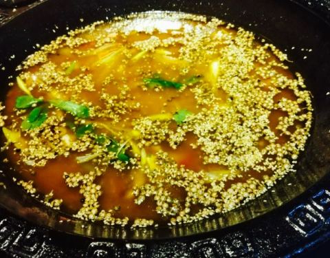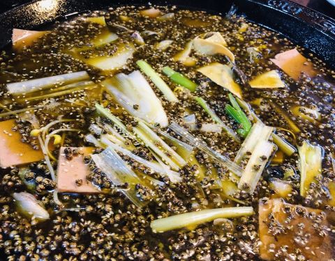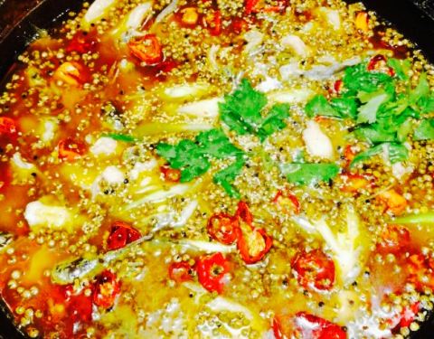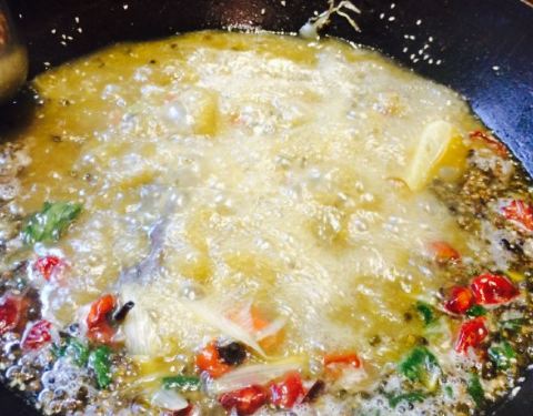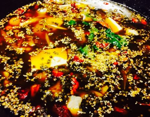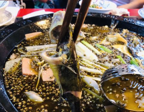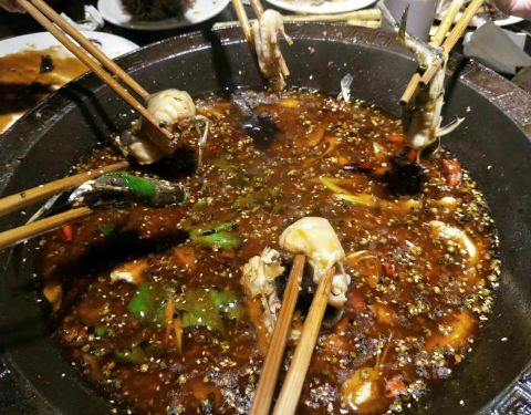 - ,锅上漂浮着厚厚的青花椒,却也不够味,无法掩盖黄辣丁的腥味,所以就没咋吃了,好基友们倒是吃的痛快