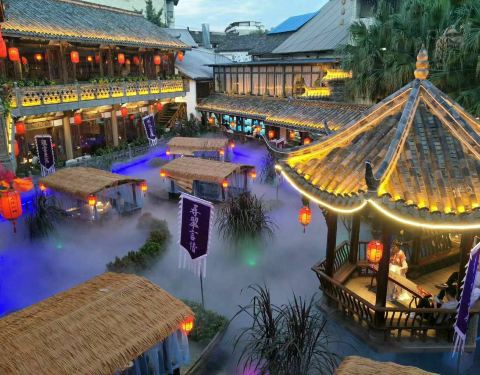 之前在九眼桥吃过一次,应该是一家的吧。环境的确很幽雅,古色古香中略带一丝仙气,还有美人抚琴作伴,菜品,味道确实很一般,摆盘不够精致大气,看着没有那种勾人食欲的样子,我完全是被环境吸引的??,锅上漂浮...之前在九眼桥吃过一次,应该是一家的吧。环境的确很幽雅,古色古香中略带一丝仙气,还有美人抚琴作伴,菜品,味道确实很一般,摆盘不够精致大气,看着没有那种勾人食欲的样子,我完全是被环境吸引的??,锅上漂浮着厚厚的青花椒,却也不够味,无法掩盖黄辣丁的腥味,所以就没咋吃了,好基友们倒是吃的痛快。麻将汤圆不错,很有意思,可惜不会打牌的我,不认识牌,被损友们嘲笑了一番。