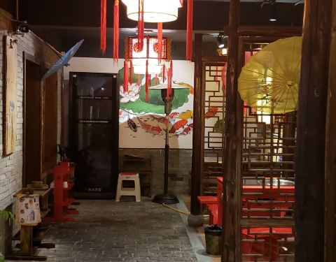 - 估计老板寻找这家分店还是花了些心思,以前这家门面是做中餐的,现在改造得古香古色,门口保持大院河...