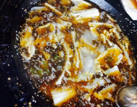 ,锅上漂浮着厚厚的青花椒,却也不够味,无法掩盖黄辣丁的腥味,所以就没咋吃了,好基友们倒是吃的痛快