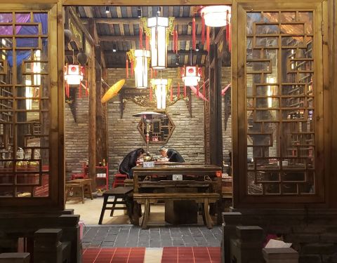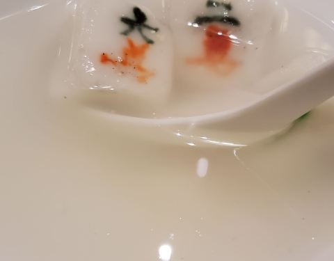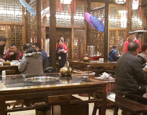 之前在九眼桥吃过一次,应该是一家的吧。环境的确很幽雅,古色古香中略带一丝仙气,还有美人抚琴作伴,菜品,味道确实很一般,摆盘不够精致大气,看着没有那种勾人食欲的样子,我完全是被环境吸引的??,锅上漂浮着厚厚的青花椒,却也不够味,无法掩盖黄辣丁的腥味,所以就没咋吃了,好基友们倒是吃的痛快。麻将汤圆不错,很有意思,可惜不会打牌的我,不认识牌,被损友们嘲笑了一番。