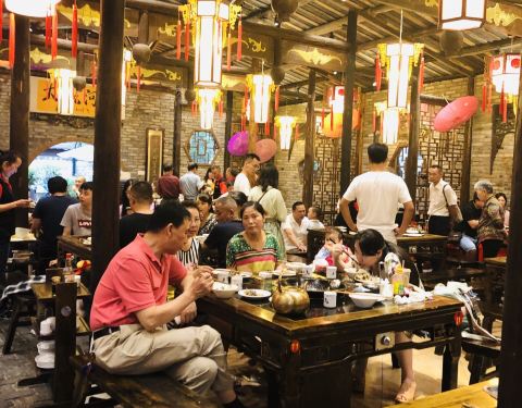 小时候是很讨厌吃鱼的,究其原因有两点,1,爸妈做的真的不入味,2,厌恶一切如鱼皮这类滑溜溜的肉质,会恶心。到四川生活以后,才慢慢发现鱼也可以做的很入味。让我对鱼改观还得拜谢多年前朋友带我在乐山江边吃的野生黄辣丁,从排斥到热爱,只用了一顿饭时间,原来人可以如此善变,多年的执念竟然一瞬间被摧毁,人性真是不可控。大院河鲜是朋友推介的,听说那一群小女子连汤都能喝到干净着实引发了我浓厚的兴趣,那就必须来了。国庆当天生意挺不错,六点钟就客满,浓烈中国风的装潢很吸引人,素雅别致的汉服迎客,飘飘渺渺的青烟造势,古筝女子如梦似幻庭间一坐,此曲只应天上有。通行的小伙伴们想吃辣,点了麻辣锅,完美错过激情椒麻锅,味道不算可圈可点,既不辣也不算香,但也不难吃,没留下什么深刻的记忆。可爱的麻将汤圆造型独特,味道也不错,这顿饭最有好感的便是它。总之,此处优美的环境外加中上的口感留客,商务宴请,家庭聚餐来这里不错,若老板能再弥补下服务的欠缺,增加几个人手,提高服务员的培训,相信生意还会更好的。