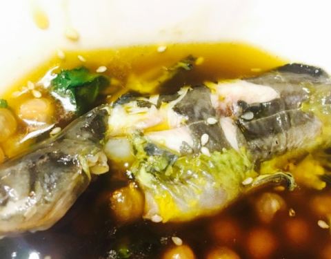要的激情椒麻锅,商家提前在后厨帮我们烹制好了江团,端上桌就可以食用了,表面一层芝麻,看着很是秀色可餐