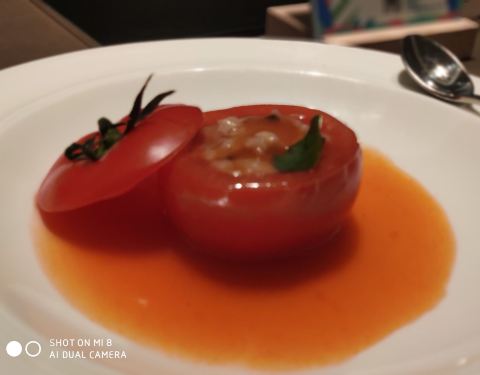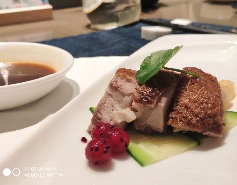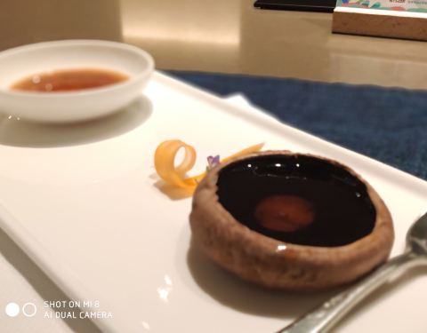 视觉与味觉的双重享受--原上·健康餐厅 位于杭州印景澜云台酒店42层,坐拥一线钱塘江景。 眺望窗外的钱江夜景,璀璨的灯光秀,轻柔的背景音乐,标准的西餐礼仪侍应,可口健康的西餐,缓缓的进行着,绝对的情调之夜。 中央开放式操作台,大厨忙碌着,侍应生一道一道的呈上精美的菜品。 鱼子酱肥鸭肝延生蛋 鲜美,细腻,香浓是三味食材先后带给我的口感,不经意的打开了味蕾。 滋补靓汤 当天的是黄精炖排骨,汤色清亮,喝汤之鲜美,品出了松茸菌的纯粹的鲜。 香菜纽西兰羊排 最爱肥瘦相间部位,细腻鲜嫩,嚼起来有爆浆的感觉,很赞哦。 浓香豉油鸭 鸭肉有点紧实好在不柴,蘸小碟子里的汤汁,更美味。 鲜番茄焗梅花肉 创意不错,不过个人感觉这个菜称之为“酿”更合适。梅花肉平时就是我的心头好,此处和番茄酿在一起,酸甜清新的口味,真的很好吃。 原味牛排菌 侍者上菜时特意解释了此道菜,惊讶于无添加的牛排菌有这么一汪清泉!尝一口汤,天哪!无法用语言形容的鲜美,惊为天物!荣登今晚最佳! 香煎比目鱼 低温煎制的健康菜品,比目鱼入味且鲜美,不错哒。 上汤时蔬 当天是嫩桑叶,白瓷盅里碧绿的非常养眼。桑叶功效是疏散风热、清肺润燥、清肝明目。药膳同源,喝一碗桑叶汤,驱除五月的暑气湿气,正当时啊! 提拉米苏 一道甜点,给这一餐盛宴划上完美的句点。 记得提早电话预订,可以的话指定窗口景观位,会为你的就餐体验加分。
