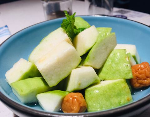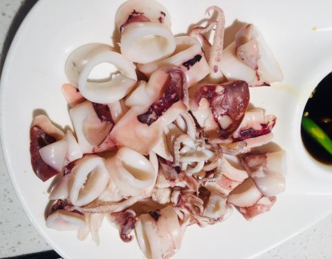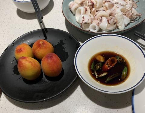 正宗闽南味道!果不其然,非常好!台湾的酸梅芭乐,少见哦,很好吃。 地道白灼小管,我要吹爆这道菜