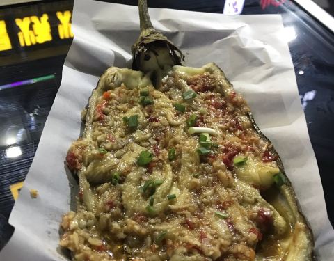 点了烤茄子,烤韭菜,烤面筋,烤香肠,很多烤串,都特别的好吃。尤其是烤茄子,真的超级美味