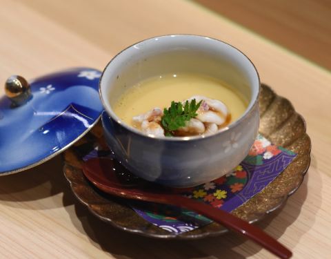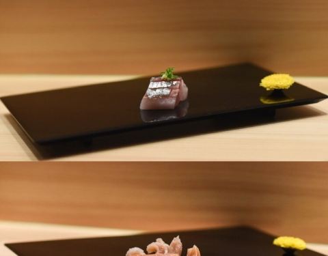 轻轻移开黄褐色的木拉门,身着和服的店员便用日语热情相迎。在一楼换完鞋,便步入二楼用餐。 他们家的装潢也如店名一般素雅整洁,柔和的灯光,简约的和风器物,店员小姐姐精致到头饰的小细节,都让你有种置身日本的错觉。 吧台很是开阔,如果你喜欢与大师傅零距离接触可以选择坐在这儿。能亲眼看着那些新鲜的食材,通过巧手匠心,华丽蜕变为精致料理。吧台其侧的包厢则更为隐蔽,适合商务洽谈和私密会餐。 刚落座,便看见鮨秋为每位客人准备的欢迎词卡片,还未用餐,便充满了风雅的味道,给我们满满的仪式感。 鮨秋的套餐皆是主厨精选,有399,599,1299等各种套餐可供选择。少了老调重弹的枯燥,多了应时应景的精彩。店员会在餐前贴心询问是否有忌口,主厨会根据客人的要求,度身定做一餐惊艳的料理。 先是和风前菜三味,包含菠菜配木鱼丝,河豚鱼鱼冻和蛋黄虾球。摆盘精细考究,错落有致。尤其要夸一下【河豚鱼鱼冻】,河豚鱼皮的胶质在鱼冻里得到了完美的体现,入口Q弹爽滑。哧溜一下吸入鱼冻,瞬间在你的味蕾上化开,所有滋味一下子包裹住了整个舌头。 到了刺身三点时,会呈上一朵可供使用的小菊花,撕开花瓣放进酱油里,是不是别有新意呢? 他们家的鱼肉处理得十分得当,新鲜且不腥。送入口中,用舌尖轻轻划过它的纹理,感受它最原始的味道,咀嚼起来滑嫩又不失韧劲,大脂几乎入口即化,油脂在口腔中缓缓流动,让人不仅大呼过瘾。 寿司手握真是我饱了眼福又饱口福,只见米饭在大厨灵巧的双手间上下翻飞,从松散的米粒变成了紧实的寿司醋饭团。他们家醋饭的制作也是极其讲究的,选用了珍贵的秋田小丁,做寿司之前米饭的温度和湿度也须得相当精准,差之毫厘便会影响整体的口感。 因为寿司在制作时,已经刷过一遍酱汁。所以大厨为你呈上之时,一口吃下即可。能让寿司的料和米饭充分与你的舌头接触,让每一层的丰富口感在唇齿间释放。特别喜欢竹荚鱼手握的细腻回香,能品尝到如此甘旨,当真令人心情愉悦。