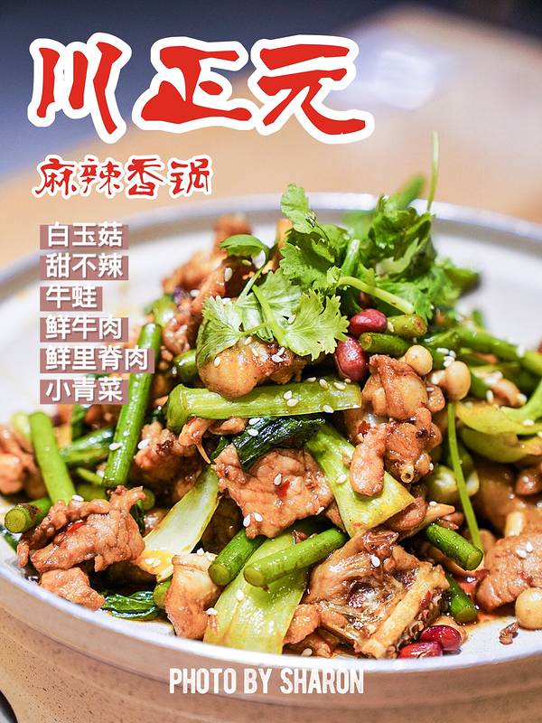 🥢解馋的麻辣香锅,想吃什么都来一点吧。这就是一款什么都想要的下饭菜。 ▪️——————📚实用信息📚———————▪️ 🎈餐厅名称:川正元·麻辣香锅·香辣蟹·牛蛙 🌀商户地址:杭州浦沿街道江南大道世茂缤谷一楼 ⏰营业时间:10:00-01:30 🚇交通攻略:地铁1号线周边 🚗停车攻略:世茂缤谷收费停车场 🍢🥓🍖🍗🥦100块的香锅怎么吃🥦🍗🍖🥓🍢 荤菜:甜不辣,牛蛙,鲜牛肉,鲜里脊肉 蔬菜:白玉菇,小青菜 综上所述,是一个肉类爱好者!不忌香菜,葱。没有这两样,香锅就没有灵魂。不过牛蛙量偏少,毕竟预算有限。香辣上头的感觉,最好配碗白米饭🍚。 ▪️———————🉐TIPS🉐————————▪️ 🌿餐厅环境🌿 店铺分2个区域,室内和室外。晚间去,店内灯火通明,与霓虹闪烁的世茂缤谷相互辉映。总体感觉装饰是比较新。 💁🏻♀️餐厅服务💁🏻♂️ 上菜速度,标配的餐厅餐具,总体服务满意。 🌈餐厅特色🌈 主推麻辣香锅,香辣蟹,炭火牛蛙。白天适合简餐 晚上适合宵夜聚餐,选择多样。 💰人均消费:70