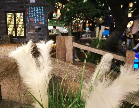 清新自然的设计,流转之间,瞬间把将你带回古朴自然的江南,来过一次,便不想离开。泥瓦垒砌的屋檐,悬挂的蜡黄灯笼,年代感十足的方木桌,暖色的烛台,无不让人感觉放松舒适。石桥流水,姹紫迎松,随处可见的绿...
