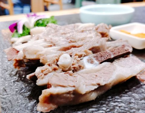 想吃五宝蒸全羊的话必须预定,蒸出来的羊肉相当细腻而且汁水丰盈,原味的就非常好吃,配蒜吃美味更是...