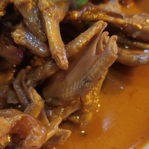 |鸭掌煲^38RMB,标注的辣度比较高,可是入口却不会很辣,卤的还是挺入味的,适合点一瓶乌苏搭配!