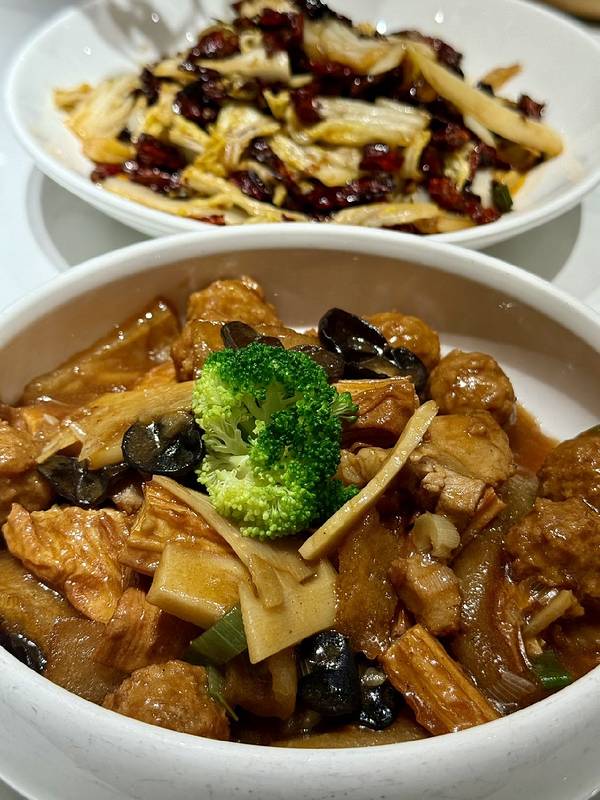 【口味】芥菜拌木耳。这个菜不管是味道调的,还是菜品的质量都是不错的满分。 农家醋粉,他们家的醋粉拌的也非常好,里面有豆芽,小青菜等,这个也是满分。
