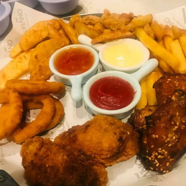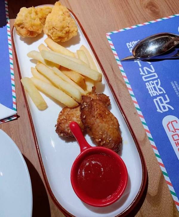 烤鸡拼盘鸡翅鸡腿十薯条🙋🙋🙋,番茄酱不知道是哪个牌子的很好吃。