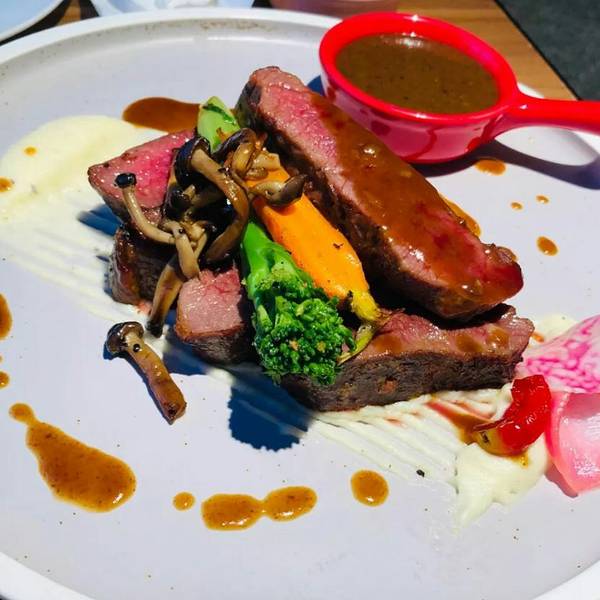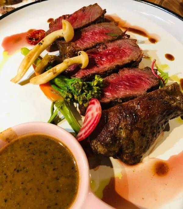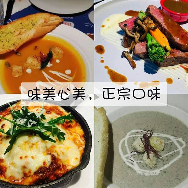 我和朋友是中午去的,想着中午清净点。我喜欢这家的牛排,😉😉嫩嫩的牛肉裹着浓郁的黑椒,瞬间就征服了我的胃,点的七分熟。😋😋小食拼盘也被风卷残云似的席卷而空。 因为是很喜欢奶油味的汤,服务员小...