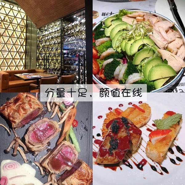 饭点的时候人很多,但是服务还是很在线的。惠灵顿牛排果然好吃,很惊艳的摆盘,外层的酥皮口感酥脆,被层层包裹下的牛排很鲜嫩。一口下去超满足。点名表扬这里的迷你红酒,一个人也可以小酌,挺享受的!还有沙拉也不错,分量很足,很新鲜。😘😘
