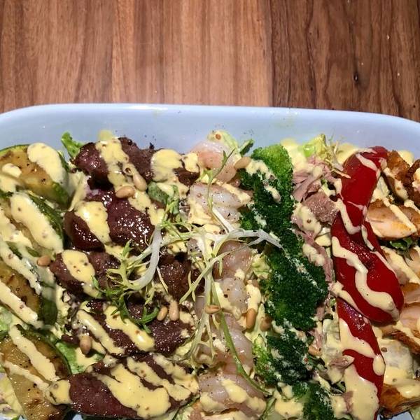 - 下次过来再试一下其他的菜品,看别人点的其他菜也很好。牛排好好吃,还有沙拉很大一份,都吃不完