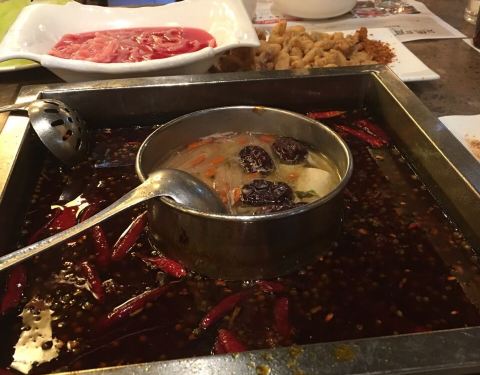 味道不错,红锅越吃越辣,最好点鸳鸯锅,鸭肠太长太棉咬不烂.不推荐,服务态度比较好