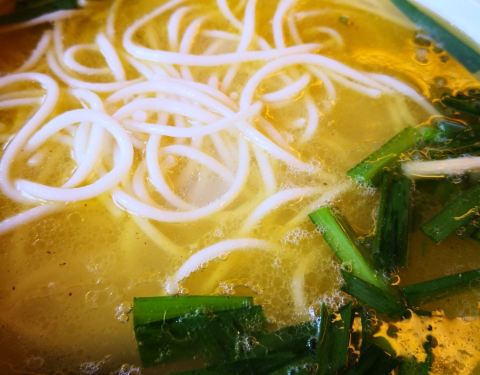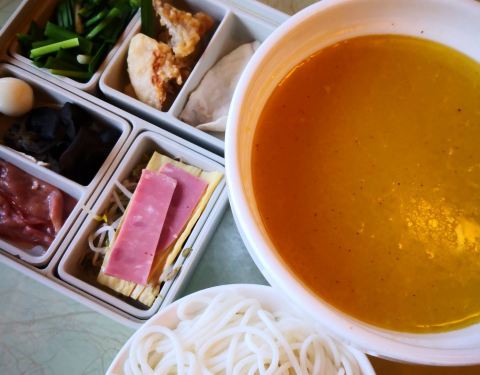 店内装修简约质朴,服务态度周到热情,点了招牌过桥米线和火爆腰花,不多会儿就上菜了,还是记忆中熟悉的小时候的味道,厨师水准真不错,米线爽口里面配的腰片嫩香鸡片美味,汤鲜营养,火爆腰花份量很足,腰花嫩爽不腥,恰到好处的美味。