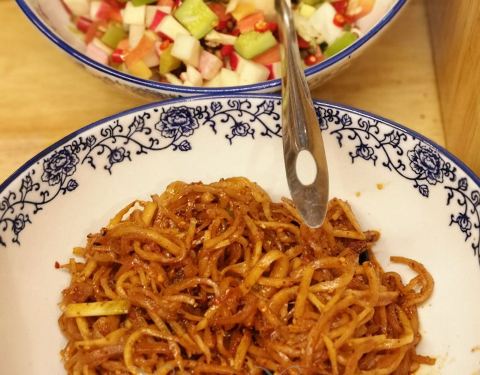 盛名之下,其实难副。点了蹄花,鱼香肉丝,麻婆豆腐和一个蔬菜茄子豇豆。就川菜来说,前三个菜最考验功力。蹄花大概水加太多,清汤寡水。鱼香肉丝应该是小酸小甜微辣,现在却是以辣为主,掩盖了小酸小甜,有点本末倒置。麻婆豆腐使人怀疑成都盐是不是不要钱的?除了麻辣就是咸,而且可以咸得冒汗。我理解为这几个菜大概天天做,已经麻木了,亦或是这几个菜操作太简单太家常了,做这几个菜已经没有激情和动力了。其实恰恰就是这几个菜体现了川菜的精华(当然不止这几个),以平凡的食材造就可口的美味,这对厨师是一个考验。当今社会,菜肴口感好坏可以很快通过网络传达到每个食客的心里,口碑也因此形成。希望经营者引以为戒。由于几个菜色、香、味没有可圈可点之处,所以没有拍照,见谅。