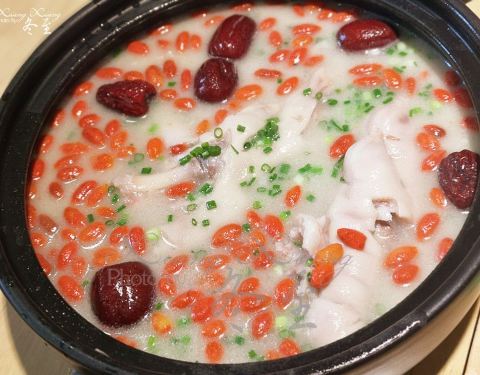 老妈蹄花,当年的半边桥网红,现在也是门店各处开花了。大家都说自己是“正宗”老妈蹄花,谁是谁非,只有天知地知你不知我也不知了。不过,现在貌似还比较客气,大家在各自家的“老妈蹄花”名头前都加个某某姓氏的前缀,倒也算是个区别你我他的方法。 这家老妈蹄花显然与先如今在人民公园附近的几家各门派的老妈蹄花走了不一样的线路,店面更敞亮,装饰元素更多,更突出了成都特色,貌似在浣花溪公园和省博物馆对面,这样的店面确实也能更吸引游客。 蹄花是主打,【滋补养生蹄花】中加入了足量的红枣和枸杞,白色的汤上面是红色的点缀,下面还有少量的山药,就是汤味偏咸,蹄花也不是太软烂。【卤蹄花】就更不怎么样了,除了有卤菜的外形,味道也是不咸不淡,完全没有突出的记忆点。其他的菜,也是中规中矩,味道普通,仅此而已。 米饭是承装在电饭煲中的,规格是家庭用的那种,这还比较少见。米饭确实不错,里面还有红薯。凉拌大头菜和跳水泡菜是免费的。 整体来说,价格不高,味道普通,路过尝尝无妨。