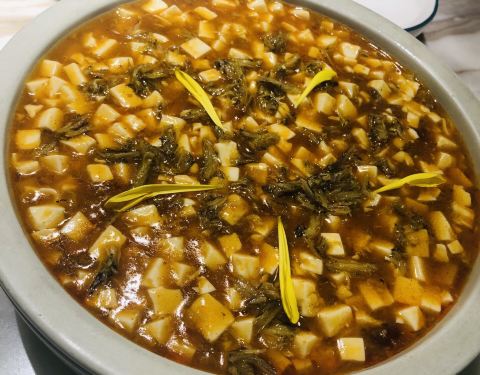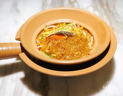 米桃还是第一次来,江南水乡的吴侬软语系风格装修,菜系出品也是以江浙菜为主。临近春节,桌上还有提了祝贺词的折扇做装饰。 姑苏松鼠桂鱼 店家招牌菜,造型还是挺美的,还有干冰制造的烟雾缭绕,鱼肉炸得有点过了,吃起来有点油,只觉得脆,而吃不到鱼肉的嫩。 鱼子酱干捞粉丝 粉丝煲什么的,一直很喜欢,这里做得也还可以,依然是吃到后面会觉得略油。 鸡头米鲜肉汤圆 样子真好看,装在莲蓬形状的浅碧色器皿里,鸡头米搭配雨花石汤圆和桃胶,看起来特别可爱。汤圆有点煮过头了,鸡头米喜欢。难得的是咸甜口味吃起来不觉得奇怪。 销魂猪油菜饭 以老式铝制饭盒乘装的猪油菜饭,香喷喷热腾腾,确实有点销魂。 酸奶小盆栽 酸奶加奥利奥饼干碎,饭后甜品吃吃,总体来说还是清爽系。