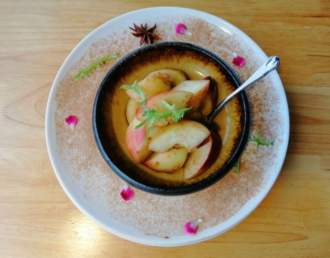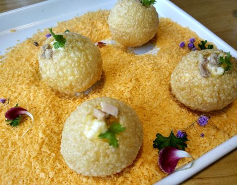 - 芒果鹅肝球也是相当有特色,酥脆的表皮里,芒果香甜,又有鹅肝糯糯的口感,好吃