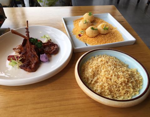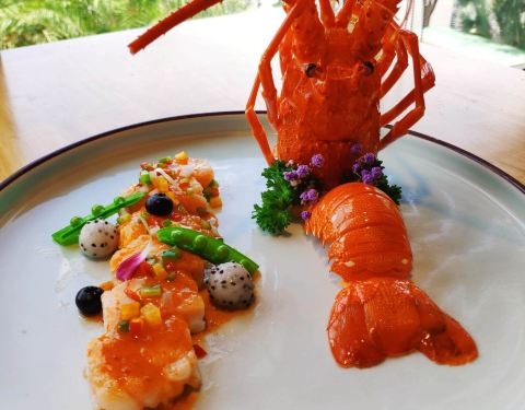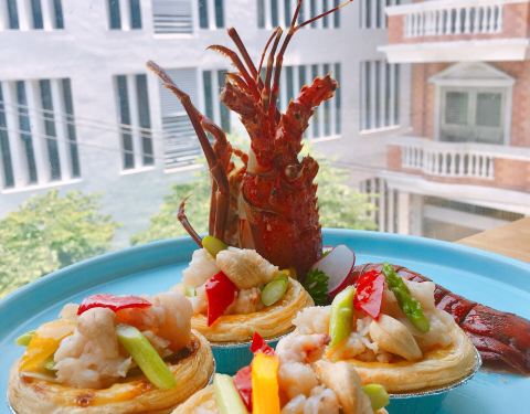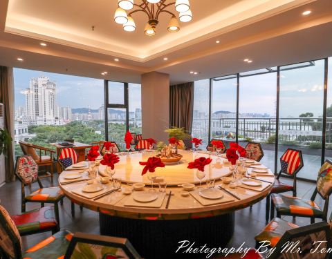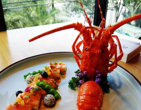 嵩屿码头往上走,就可以看到这一家店,随着电梯来到楼上,就可以看到漂亮的海景,所以称之为海景餐厅,有海景当然也有美味等着你,精致的摆盘总能让你感受到非常好的感受,周到的服务菜品的分量很足。海苔炒饭饭量很足也很好吃,最喜欢的是堂煎小龙虾已经把龙虾肉剥出来了,可以直接吃摆盘也非常的精美,而香辣蟹,带点辣还是不错的,很是下饭哟。法式羊排配紫薯球,好看又好吃的一道菜,羊肉不错,鲜嫩多汁超喜欢。迷你芒果鹅肝球漂亮又可口。