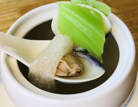 - 非常适合夏天来一盅炖汤,清甜的象牙蚌和青菜一起炖煮,汤汁可口,口感清甜!💰人均:100-110实用
